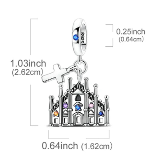 Charm Sterlingové stříbro 925 Itálie Katedrála v Miláně, Duomo di Milano 2v1 přívěsek na náramek, cestování