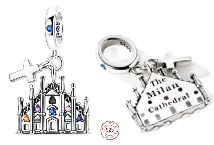 Charm Sterlingové stříbro 925 Itálie Katedrála v Miláně, Duomo di Milano 2v1 přívěsek na náramek, cestování