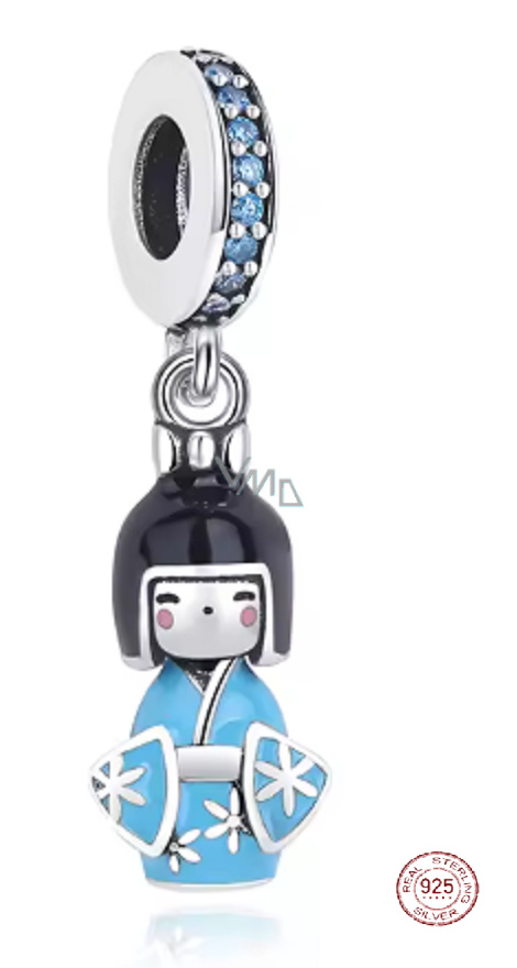 Stříbrný přívěsek 925Japonská panenka Kokeshi v modrém kimonu