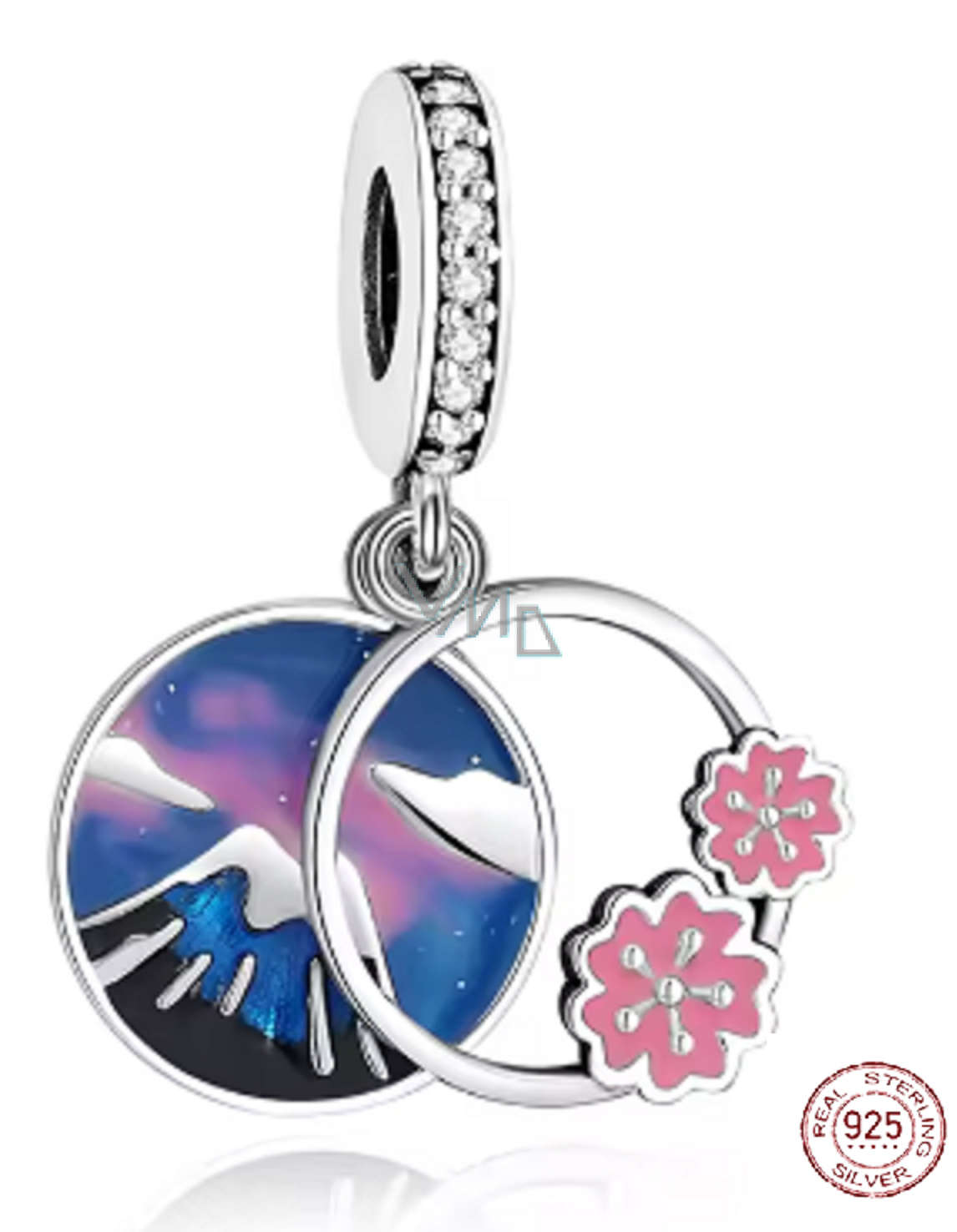 Charm Sterlingové stříbro 925 Japonsko - Fudži ve stínu sakury, přívěsek na náramek cestování