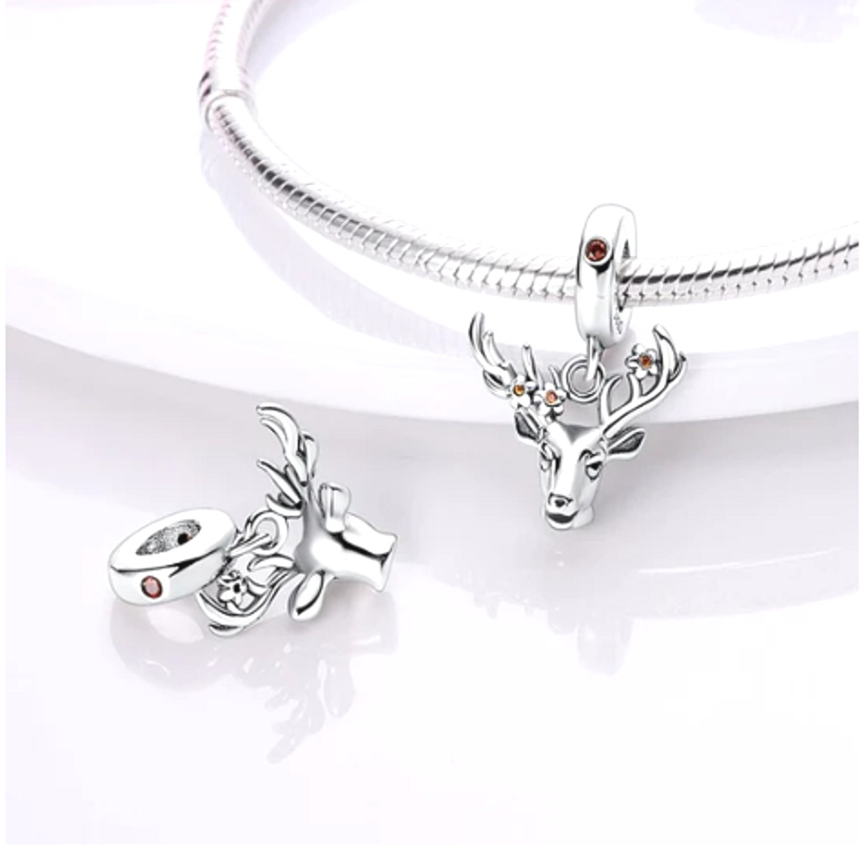 Charm Sterlingové stříbro 925 Jelen s květinami, přívěsek na náramek zvíře