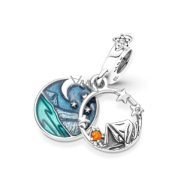 Charm Sterlingové stříbro 925 Kempingová noční obloha - stanování 2v1, přívěsek na náramek symbol