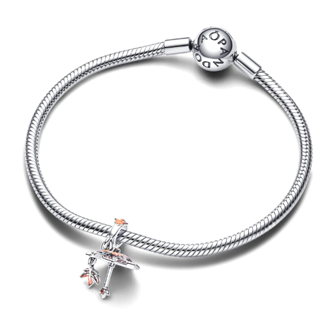 Papírový deštník Gongsun Li a Javorový list ze sterlingového stříbra je elegantní doplněk k vašemu náramku. Deštník visí diagonálně pod určitým úhlem, od špičky deštníku vybíhají drážky, potah deštníku je rozdělen na čtyři konce a každé drážky zdobené diamantovým vzorem a osazeným syntetickou Kubickou Zirkonií. Každá ze čtyř oblastí krytu deštníku je zdobena trojrozměrným javorovým listem, malovaný technikou gradientního emailu. Vnější strana je zdobena dutými detaily a trojrozměrný trojúhelník ve středu vrchlíku tvoří trojrozměrné drážky, pod baldachýnem visí Javorový list, s mírně zakřiveným středem zdobeným trojrozměrnými leštěnými linkami a smaltovaným nápisem „Glory of the King". Leštěný stojan na deštník je opatřen rukojetí deštníku zdobenou javorovým listem a na konci rukojeti deštníku je vykládáno sklo, přední strana jednoduchého závěsného kroužku je zdobena kouskem trojrozměrného smaltu Craft javor list.