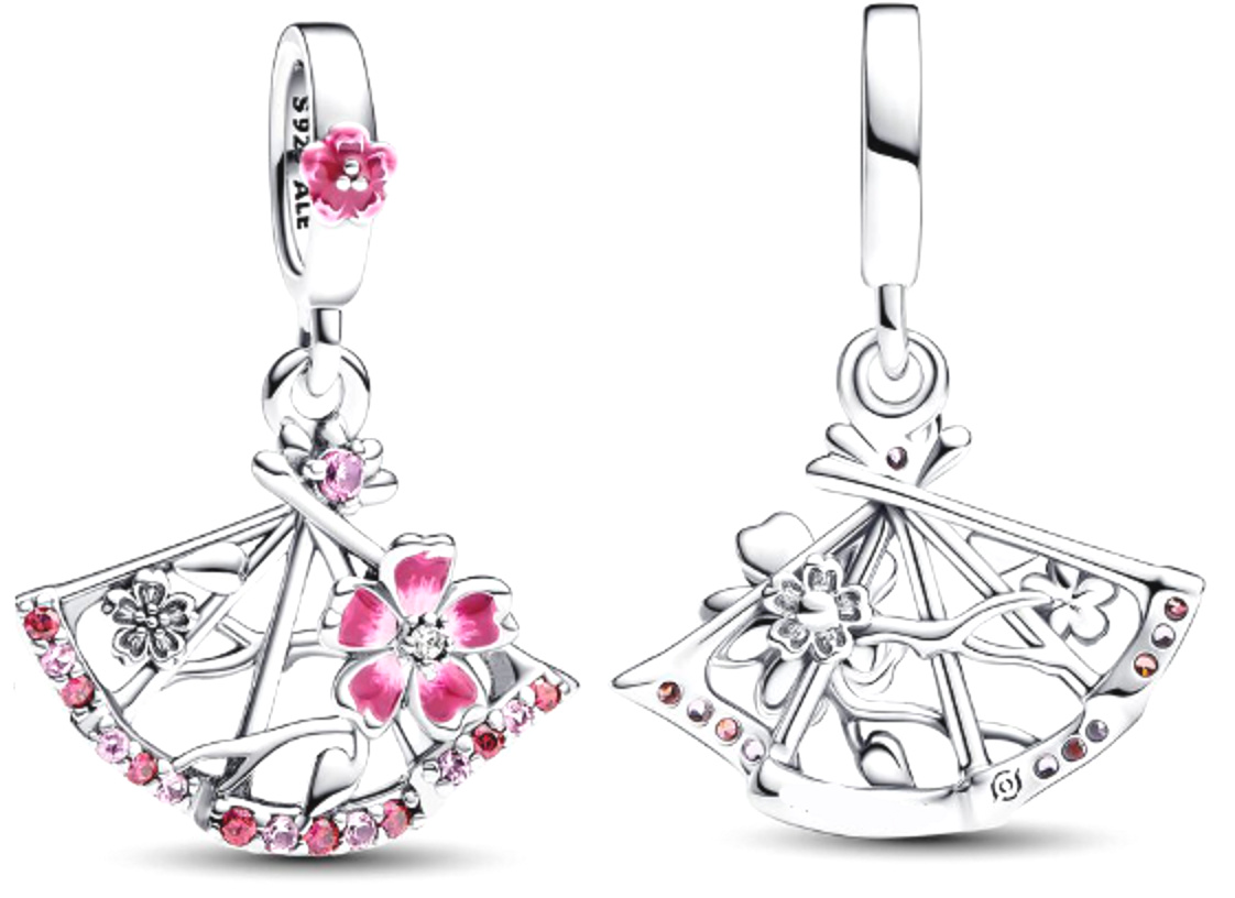 Charm Sterlingové stříbro 925 King of Glory vějíř Xiao Qiao Peach Blossom Fan, přívěsek na náramek symbol