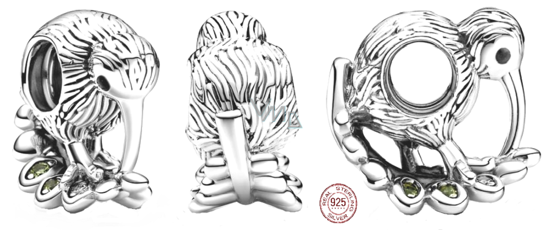 Charm Sterlingové stříbro 925 Nový Zéland symboly - Kiwi a kapradiny, korálek na náramek cestování