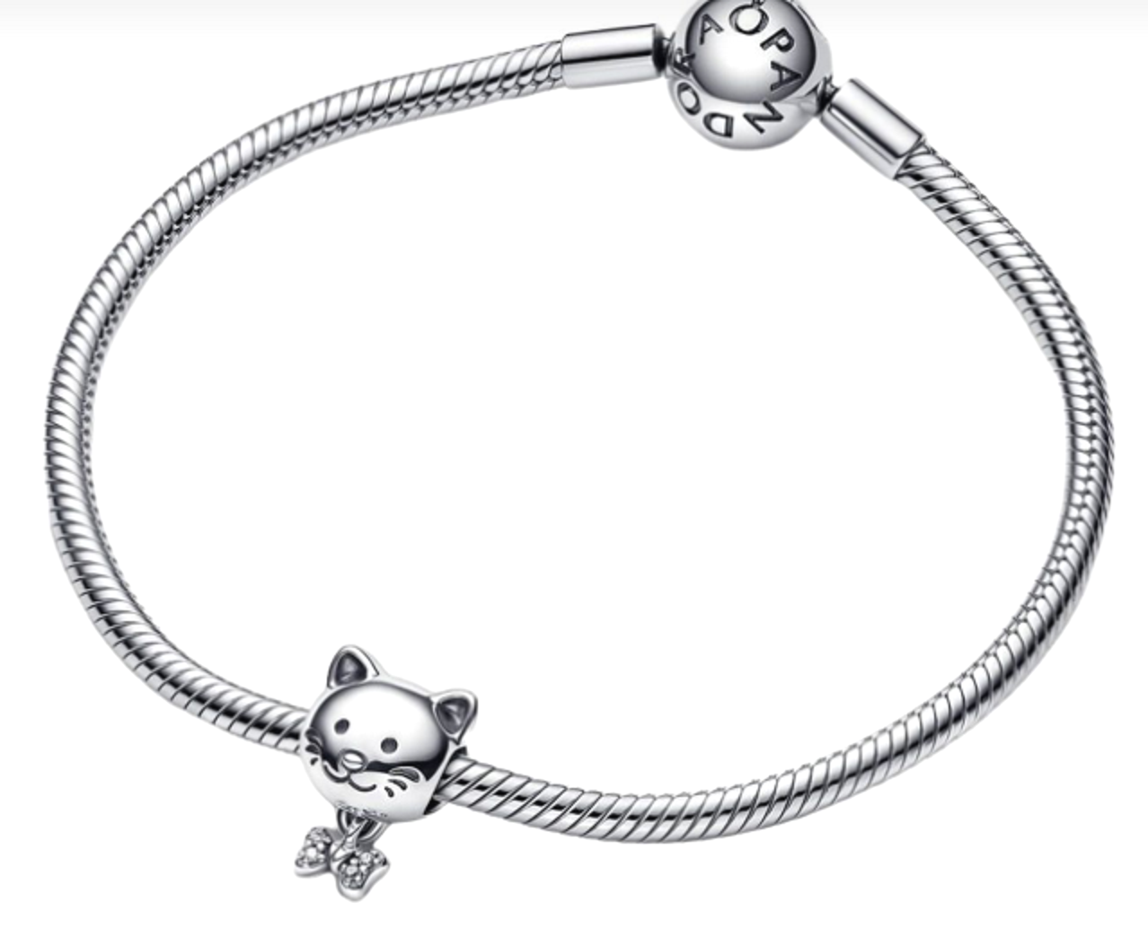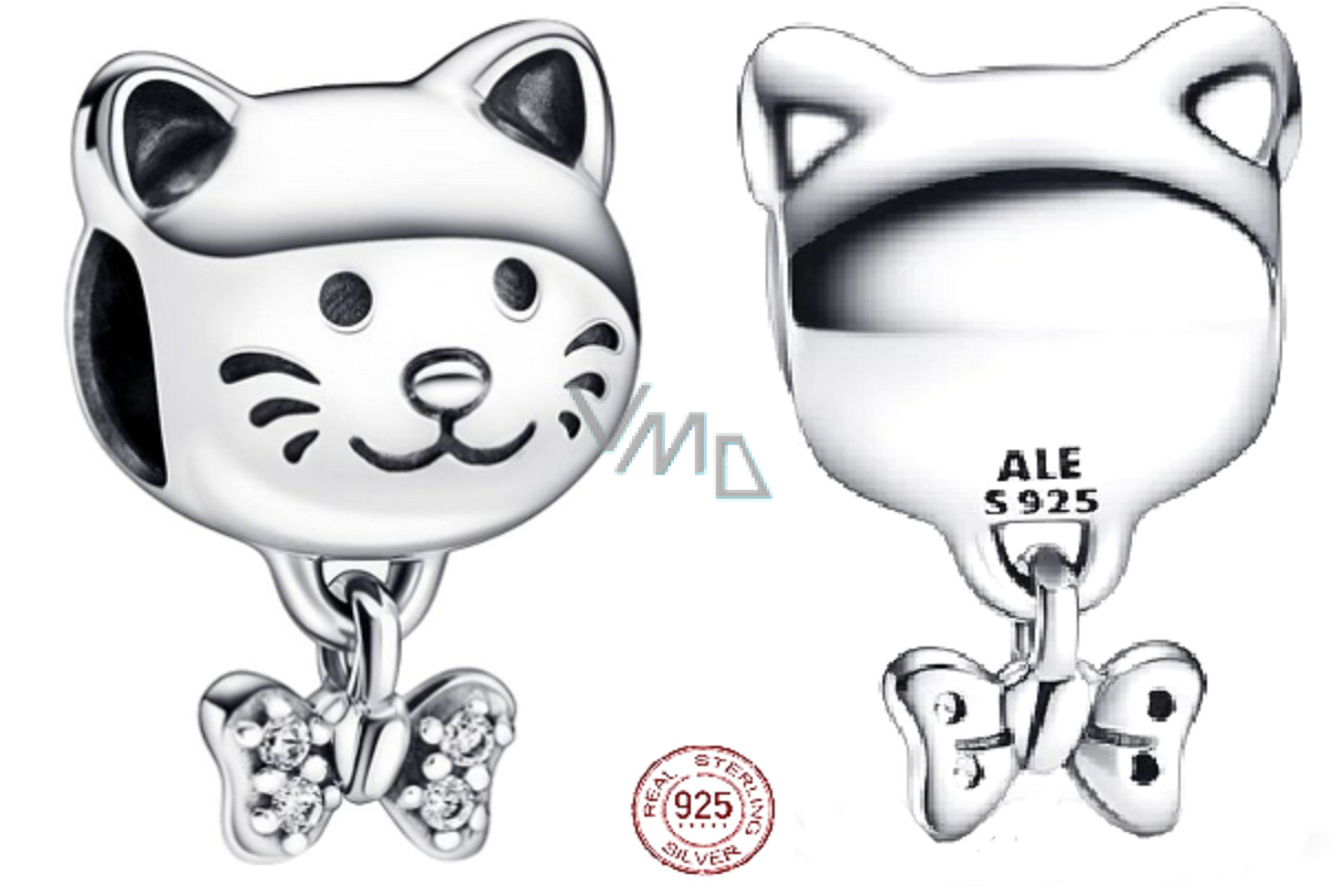 Charm Sterlingové stříbro 925 Kočka a mašle, korálek na náramek mazlíček