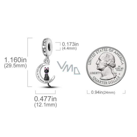 Charm Sterlingové stříbro 925 Kočka měsíc Miluji tě, přívěsek na náramek mazlíček