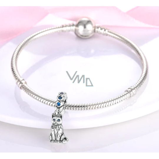 Charm Sterlingové stříbro 925 Kočka s krásnýma modrýma očima, přívěsek na náramek zvíře