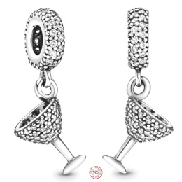 Charm Sterlingové stříbro 925 Koktejlové sklenice - čas oslav, přívěsek na náramek výročí