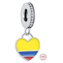 Charm Sterlingové stříbro 925 Kolumbie vlajka srdce - miluji Kolumbii, přívěsek na náramek cestování