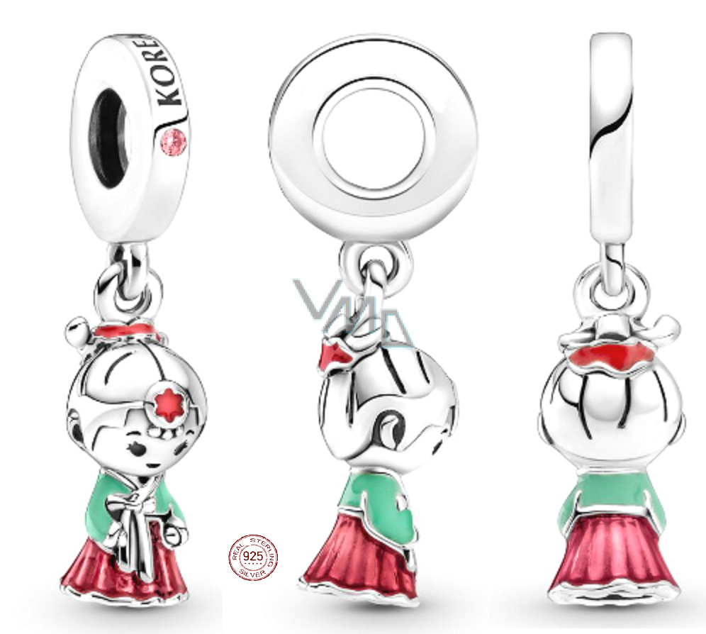Charm Sterlingové stříbro 925 Korea Korejský přívěsek panenka Hanbok, přívěsek na náramek cestování