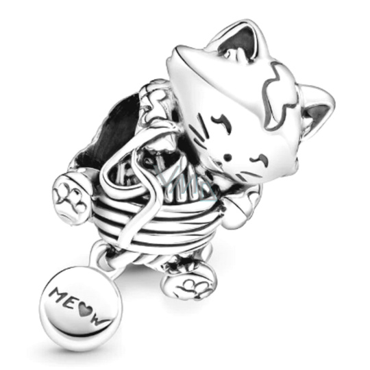 Charm Sterlingové stříbro 925 Kotě s klubíčkam, korálek na náramek mazlíček
