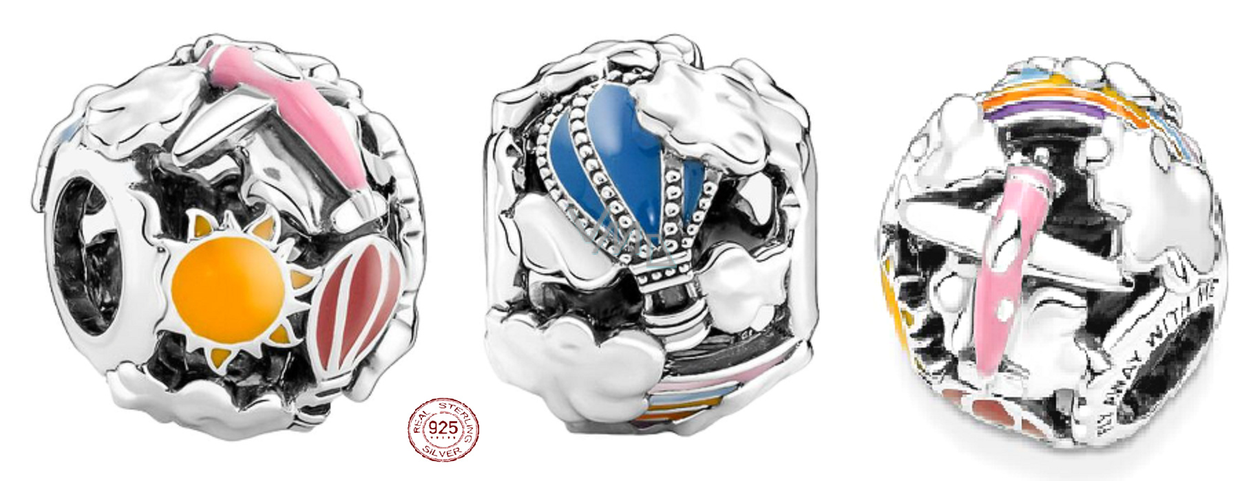 Leťte na křídlech dobrodružství s tímto barevným korálkem inspirovaným cestováním a duhou. Prolamovaný korálek z ryzího stříbra 925 obsahuje motivy související s cestováním, včetně horkovzdušných balónů, vztyčeného Letadla v oblacích, slunce a duhy, vše vytvořené ručně aplikovaným smaltem v zářivých barvách. Na korálku je na jedné straně nápis „FLY AWAY WITH ME“ - ODLEŤ SE MNOU