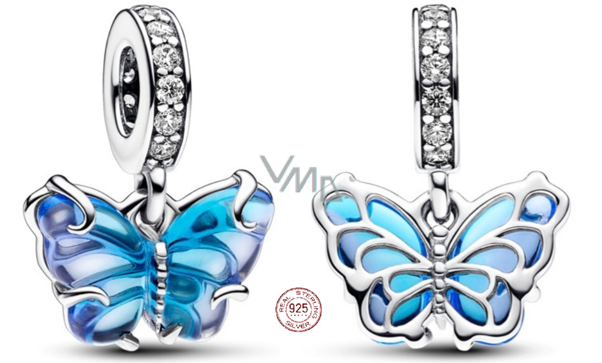 Charm Sterlingové stříbro 925 Kouzelný motýl z muranského skla, přívěsek na náramek zvíře