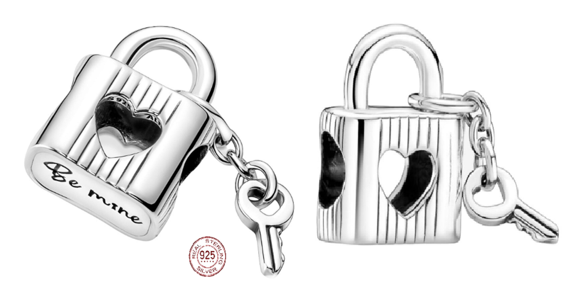 Charm Sterlingové stříbro 925 Kouzelný visací zámek - Buď můj, má, přívěsek na náramek láska