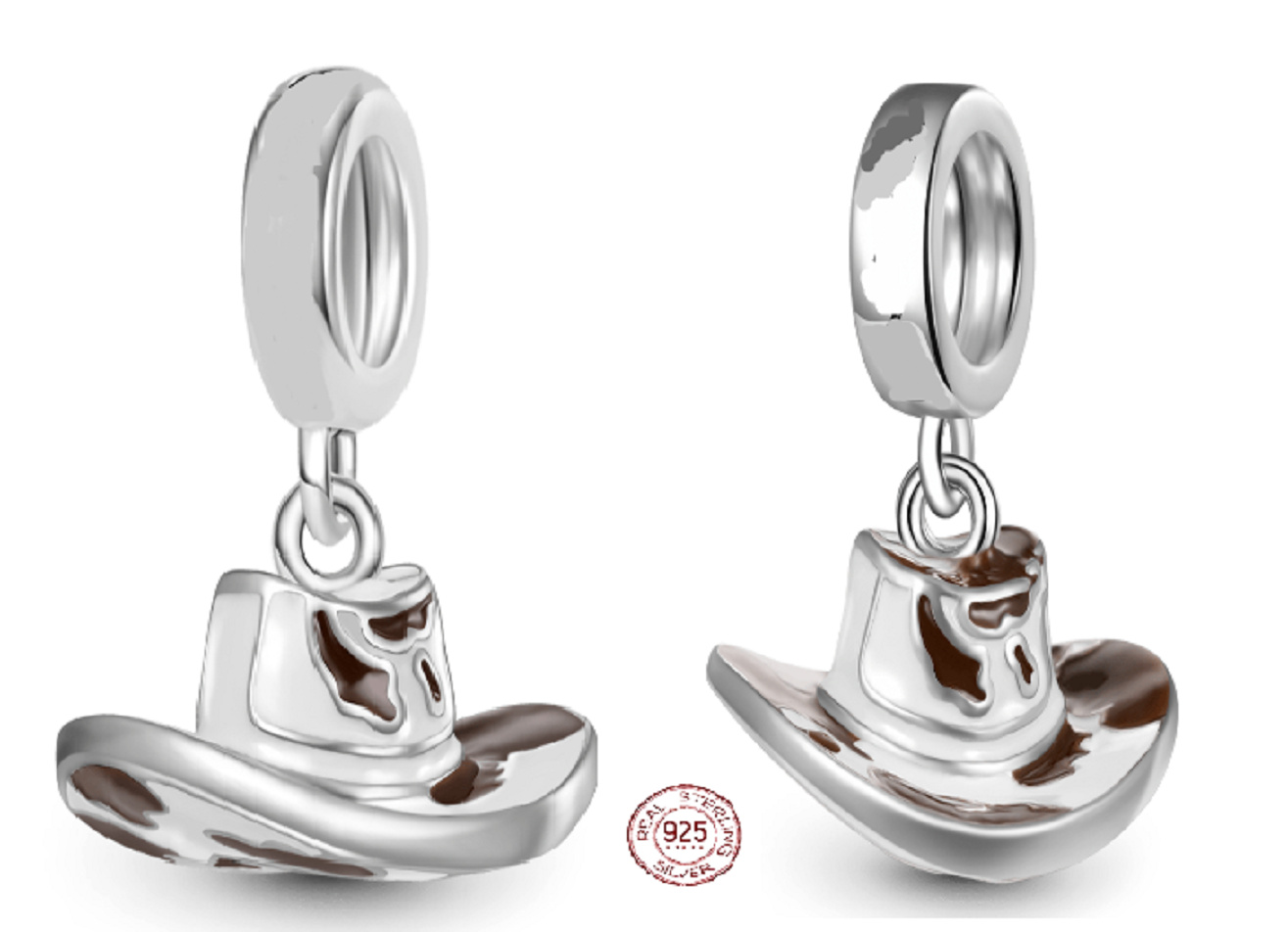Charm Sterlingové stříbro 925 Kovbojský klobouk, přívěsek na náramek zájmy