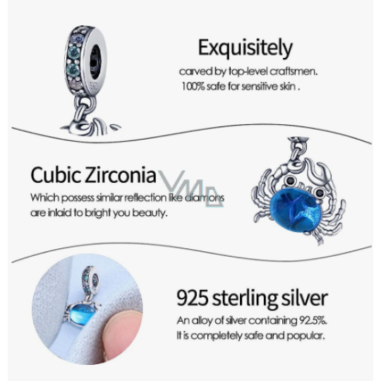 Charm Sterlingové stříbro 925 Krab modrý z Murano skla, přívěsek na náramek zvíře