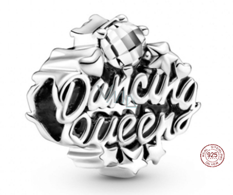 Ukažte svou lásku k tanci s prolamovaným kouzlem. Přívěsek ze sterlingového stříbra 925 obsahuje slova „Dancing Queen“ - královna plesu, vyrytá a obklopená hvězdami a srdíčky. Třpytivé bezbarvé kameny kubické zirkonie nahoře představují disco světla. Toto kouzlo inspirované tancem vám připomene všechny šťastné chvíle strávené na tanečním parketu a dodá vašemu každodennímu stylu radost, jiskru a grafický nádech.