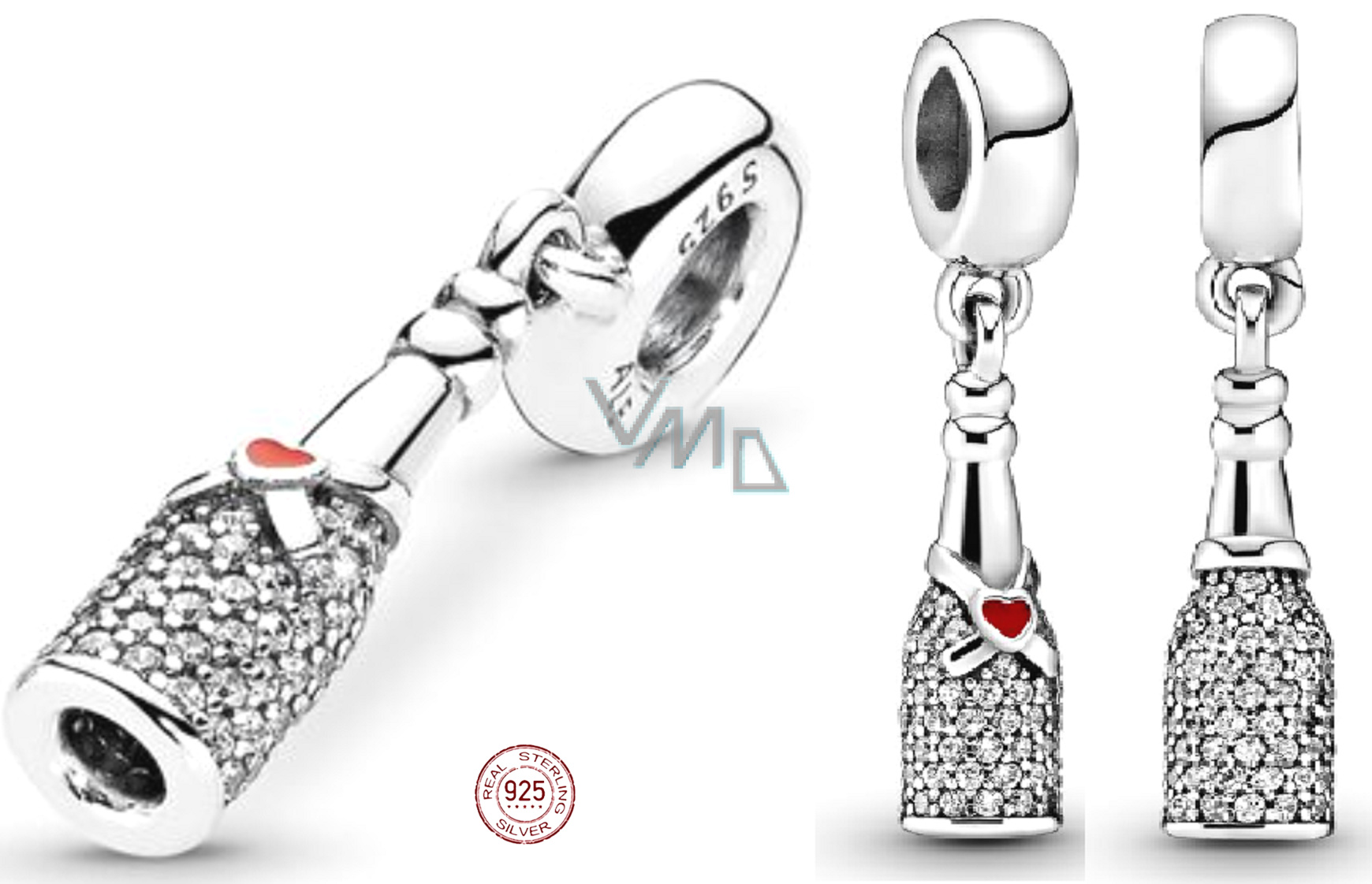 Charm Sterlingové stříbro 925 Láhev sektu - čas oslav, přívěsek na náramek výročí