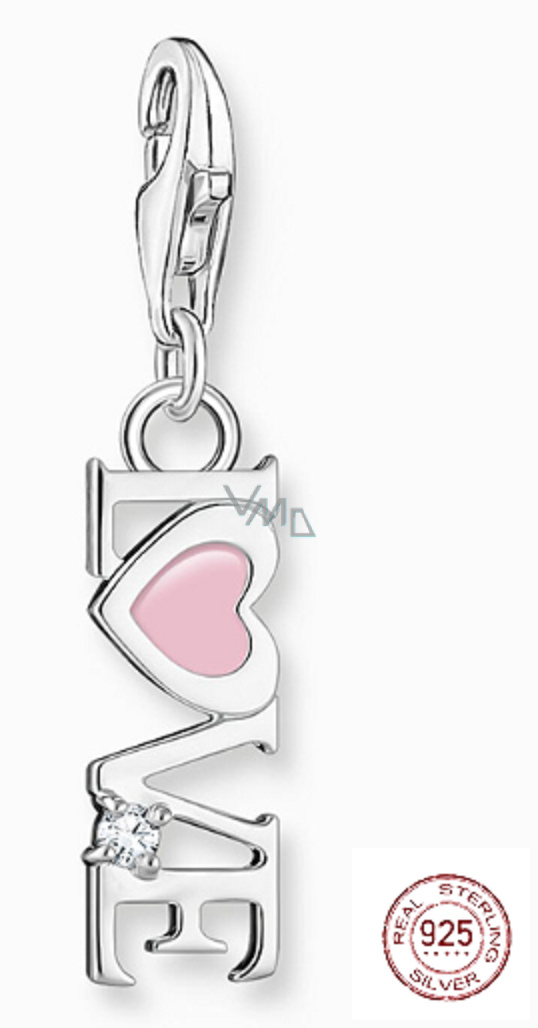 Roztomilý přívěsek s nápisem LOVE dodá vašim šperkům veselý nádech. Je vyrobeno z oxidovaného mincovního, sterlingového, stříbra a zdobeno růžovým smaltem a Zirkonem.
