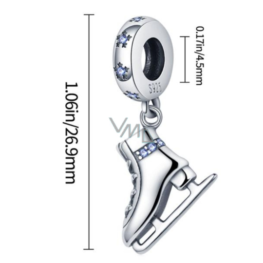 Charm Sterlingové stříbro 925 Lední brusle s modrými zirkony, přívěsek na náramek sport