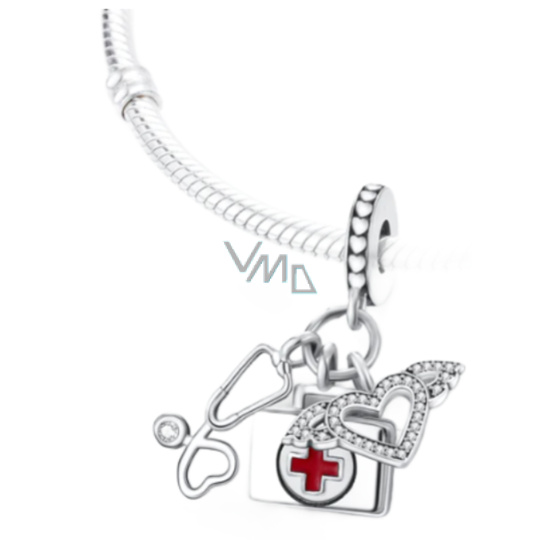 Charm Sterlingové stříbro 925 Lékař 3v1 stetoskop, lékárnička a přívěsek na náramek ve tvaru srdce s křídly zaměstnání