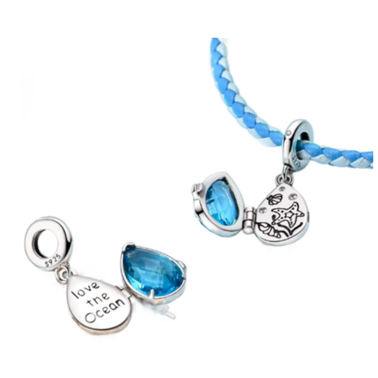 Charm Sterlingové stříbro 925 Love the Ocean – kapka moře, svoboda a ochrana, přívěsek na náramek moře