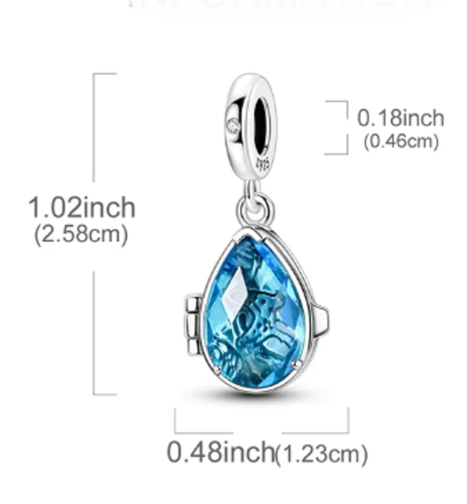 Přívěsek je otevírací, což z něj dělá nejen krásný šperk, ale i osobní talisman – místo pro vzpomínku, přání nebo symbolický význam. Lesklé stříbro v kombinaci s modrým tónem působí elegantně, svěže a nadčasově.