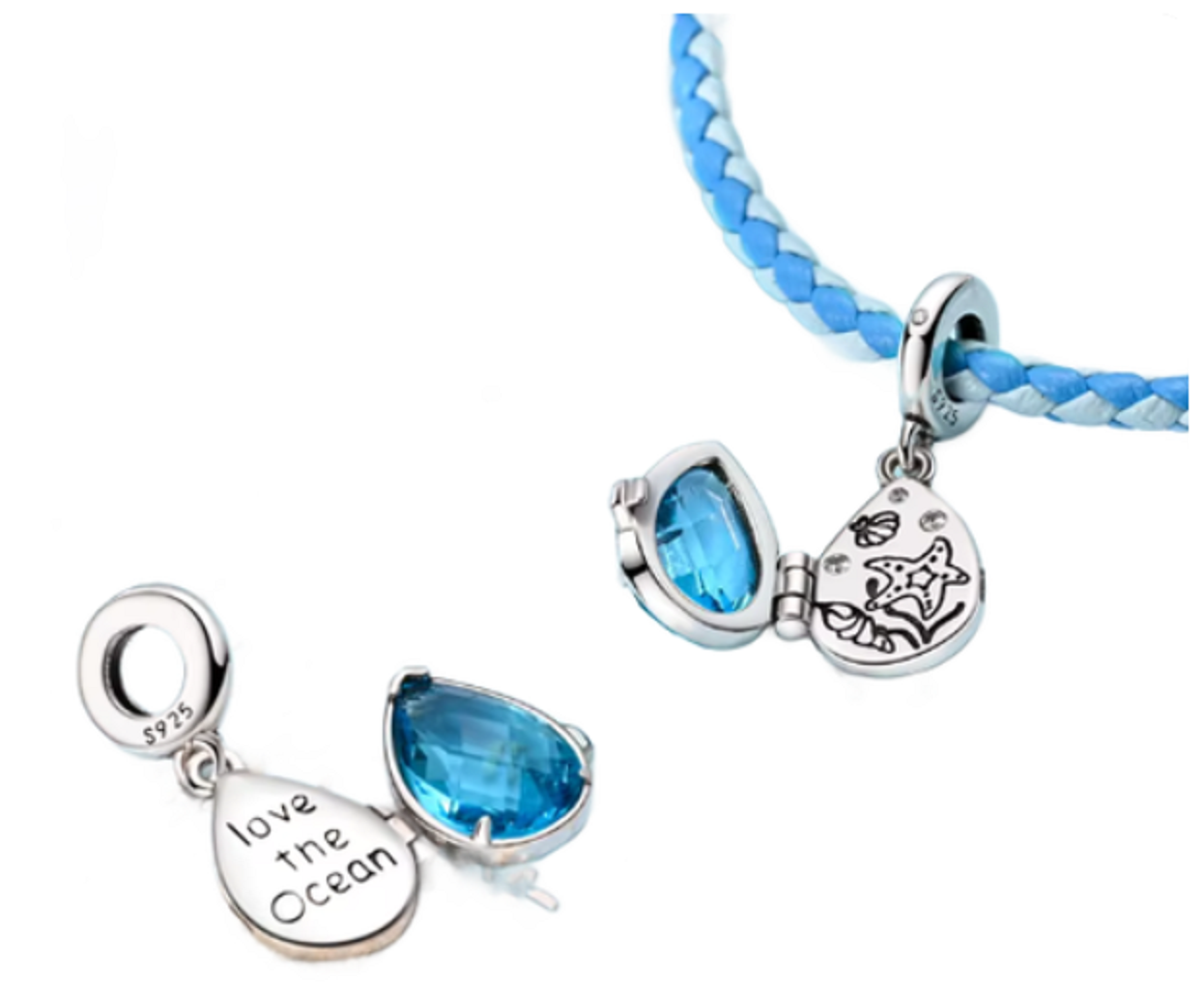 Charm Sterlingové stříbro 925 Love the Ocean – kapka moře, svoboda a ochrana, přívěsek na náramek moře