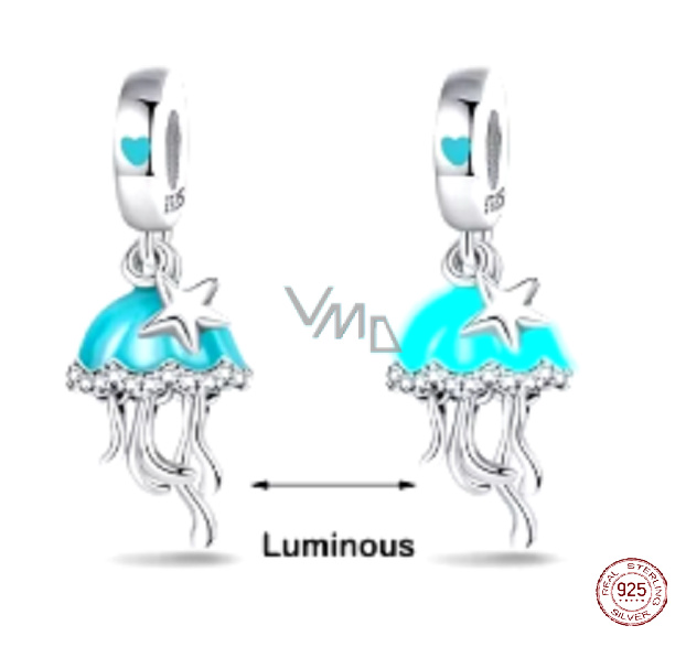 Charm Sterlingové stříbro 925 Moře - 2v1 medůza, hvězdice, luminozní přívěsek na náramek, zvíře