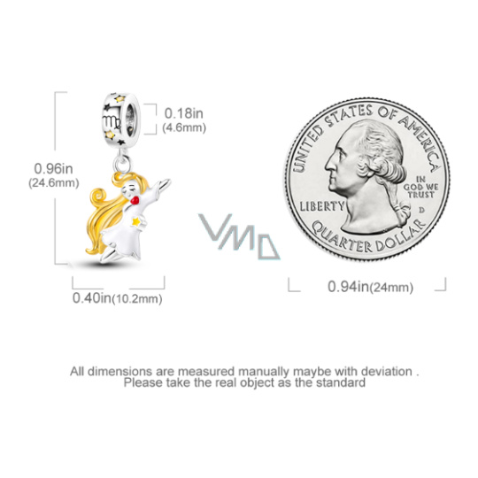 Charm Sterlingové stříbro 925 Znamení zvěrokruhu Panna, zářící ve tmě luminozní přívěsek na náramek