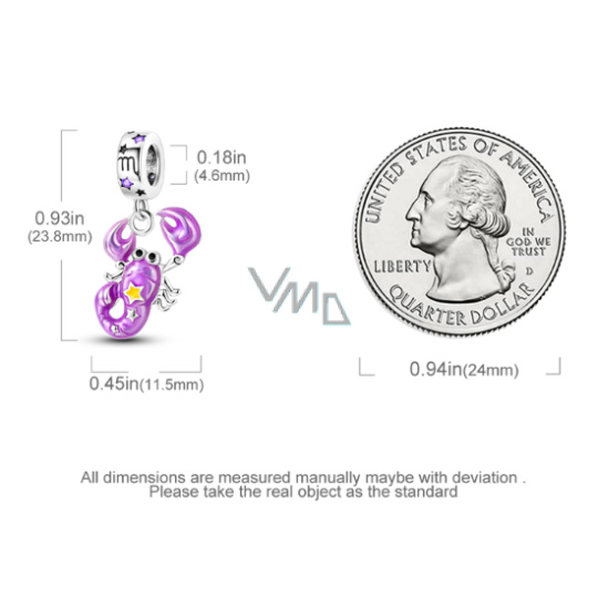 Znamení zvěrokruhu, krásný přívěsek ze stříbra, který svítí ve tmě. Přívěšek se hodí ke všem náramkům známých značek nebo jiné náramky. Šperk, který je navlečen na náramek!