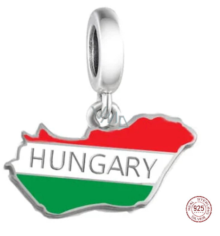 Charm Sterlingové stříbro 925 Maďarskovlajka - houpající se mapa, přívěsek na náramek cestování