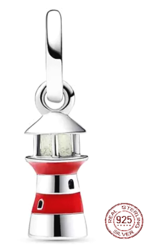 Charm Sterlingové stříbro 925 Maják zářící ve tmě, přívěsek na náramek symbol