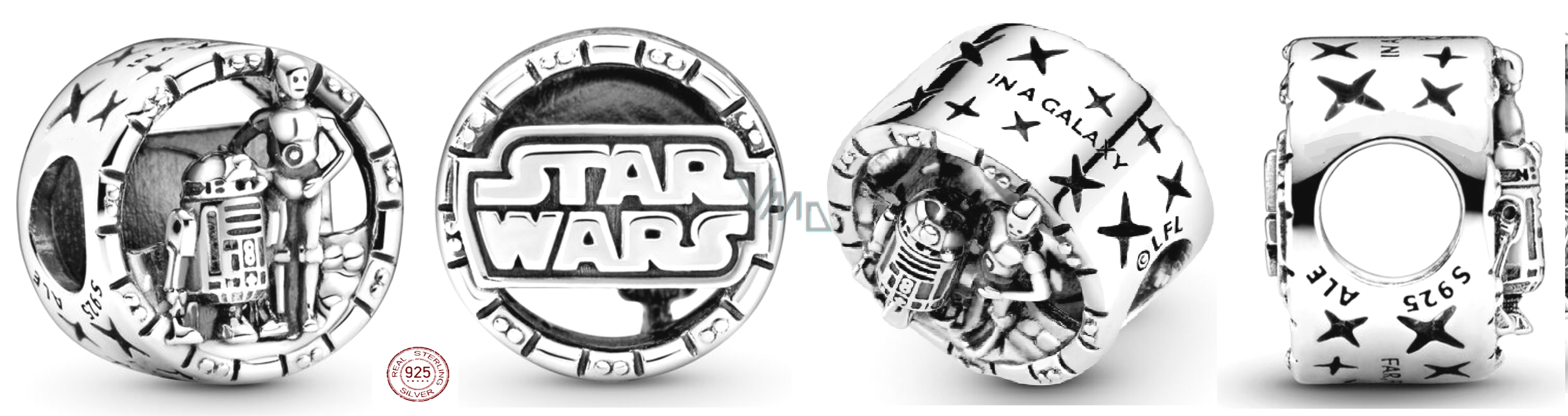 Charm Sterlingové stříbro 925 Marvel Star Wars C3PO a R2D2, korálek na náramek, film