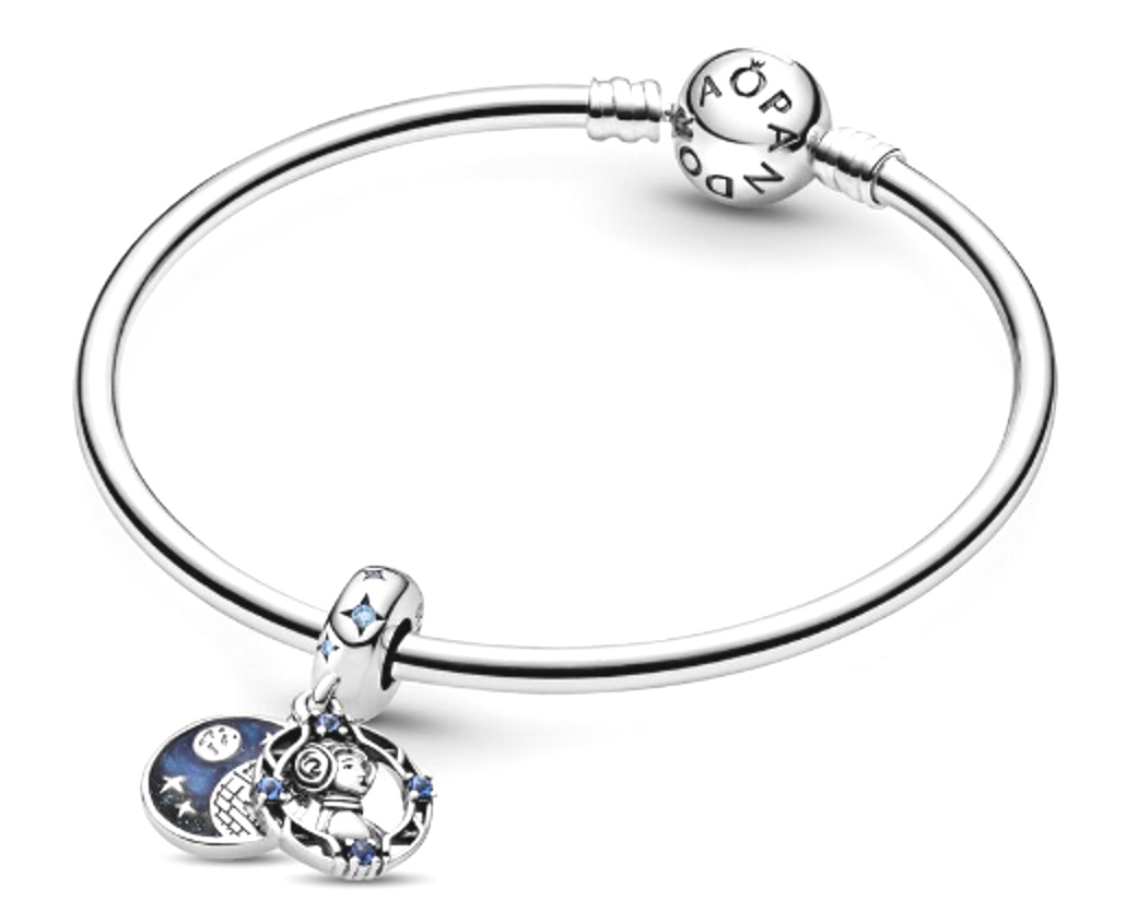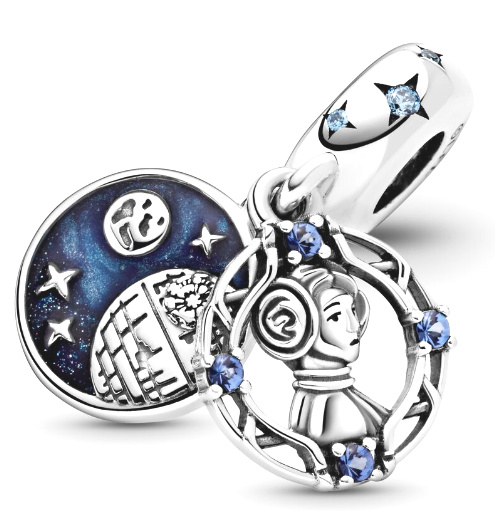 Vyjádřete svou rebelskou duši pomocí dvojitého visícího kouzla Princess Leia z kolekce Star Wars. Princezna Leia Organa, jedna z velkých vůdců Aliance rebelů. Na bitevním poli je statečná a nebojácná a svůj život věnuje ukončení tyranie impéria. Horní disk obsahuje 3D obličej princezny Leie a rám se čtyřmi modrými krystaly. Zadní disk obsahuje detaily inspirované prostorem obklopené třpytivým modrým smaltem a je zakončen rytinou „Don´t mess with the princess“ - "Nezahrávejte si s touto princeznou". Háček je doplněn hvězdičkami s modrými kubickými Zirkony uprostřed. Princezna Leia je vždy připravena bojovat za to, v co věří, a toto kouzlo vám připomene, abyste udělali totéž. Má silnou osobnost a vynikající inteligenci.