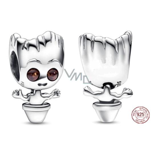"Groot, který se v květináči pohupuje ze strany na stranu, je vyroben ze sterlingového stříbra s hnědými umělými krystaly zasazenými jako oči a vroubkovanými detaily připomínajícími kůru jako vlasy a obočí. Přidejte si tento přívěsek do své sbírky jako symbol své schopnosti sílit každým dnem.