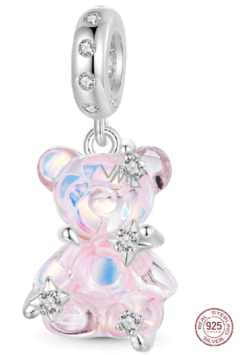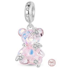 Charm Sterlingové stříbro 925 Medvěd světle růžový fantastický sen, přívěsek na náramek zvíře