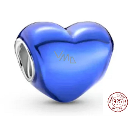 Charm Sterlingové stříbro 925 Metalické modré srdce, korálek na náramek, láska