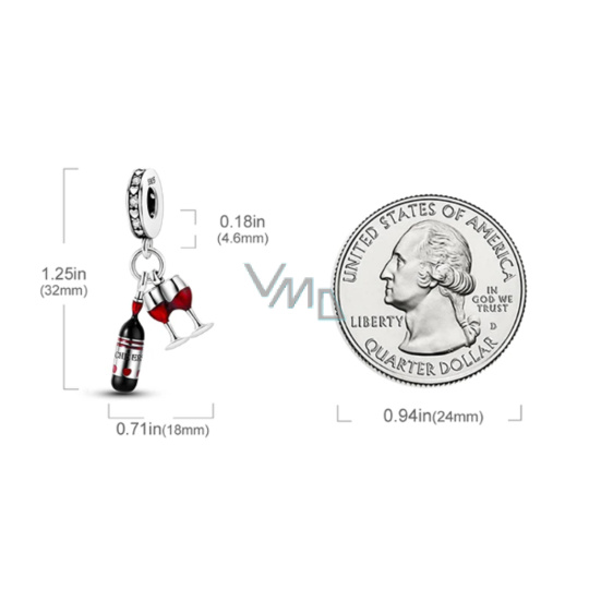 Charm Sterlingové stříbro 925 Miluji víno - láhev + skleničky, 2v1, přívěsek na náramek, jídlo a pití