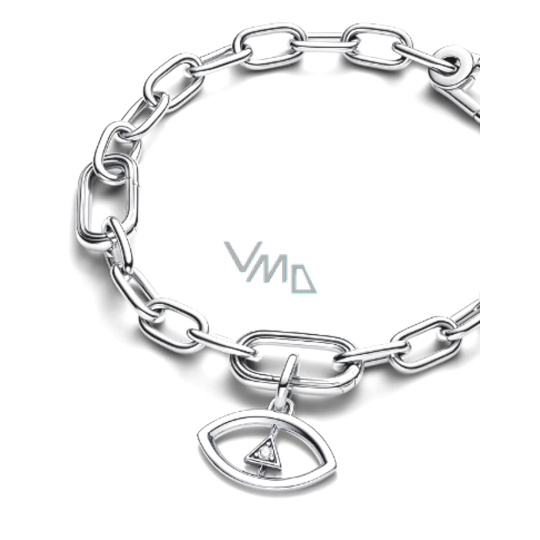Medailonkový přívěsek Amulet proti uhranutí se kterým budete vždy dobře naladěni. Tento stříbrný přívěsek má otevřenou siluetu oka zdobenou vystouplými liniemi a mikro kuličkami na jedné straně. Uprostřed oka je trojúhelník s třpytivým kamenem na přední straně a trojúhelníkový otvor a mikro kuličky na zadní straně kamene. Tento přívěsek proti uhranutí, který je ideálním doplňkem každé sbírky šperků, vnese do vašeho stylingu zajímavý šmrnc. Přívěsek lze umístit pouze na otevíratelné články.