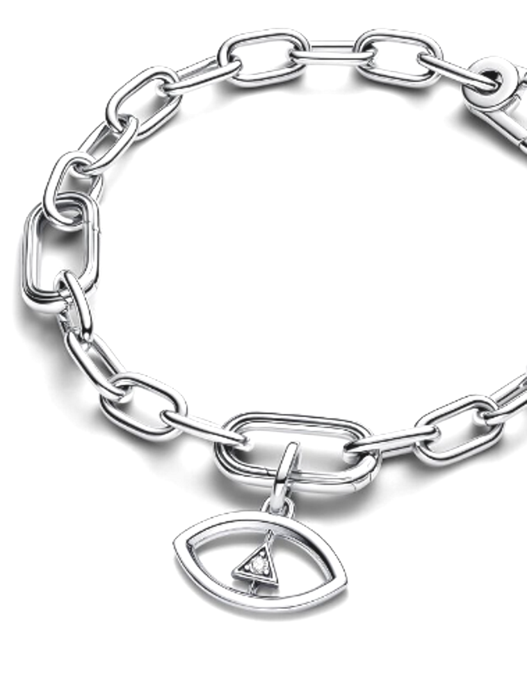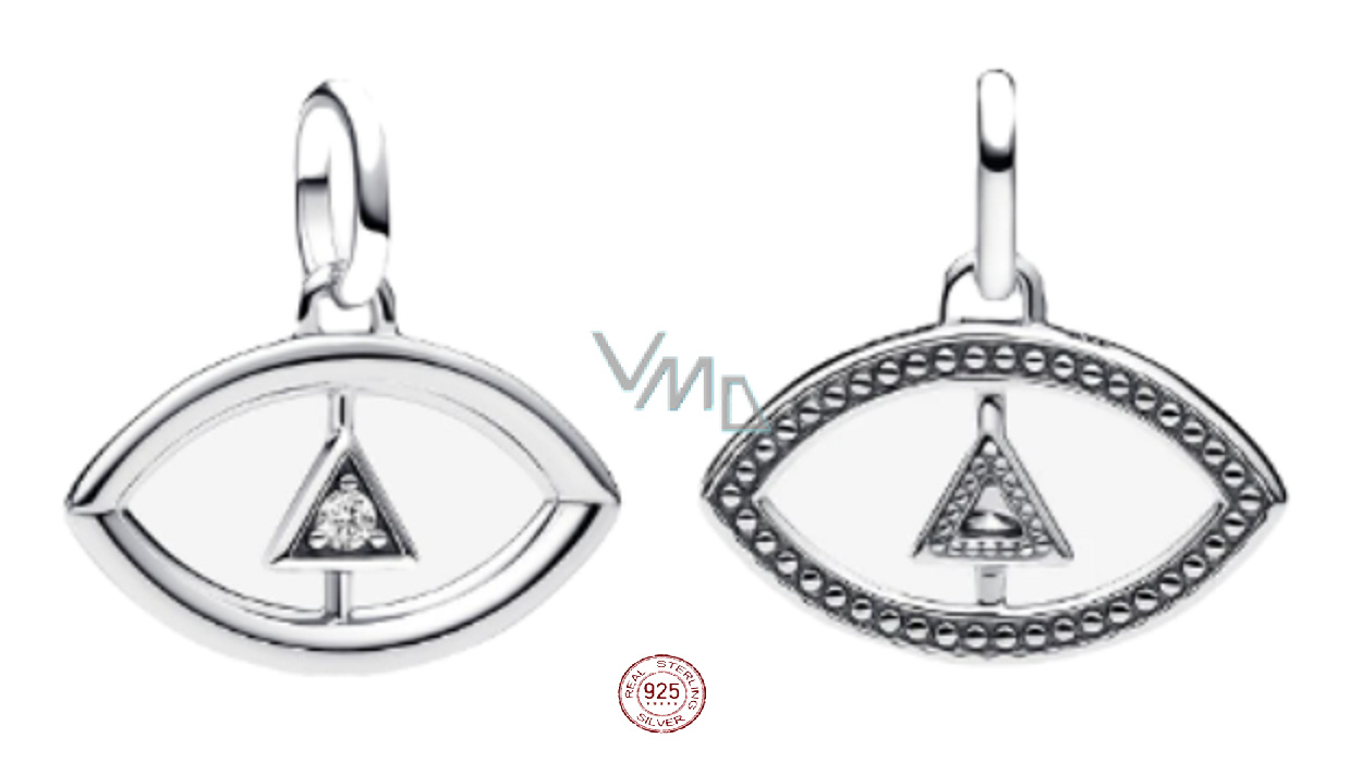 Medailonkový přívěsek Amulet proti uhranutí se kterým budete vždy dobře naladěni. Tento stříbrný přívěsek má otevřenou siluetu oka zdobenou vystouplými liniemi a mikro kuličkami na jedné straně. Uprostřed oka je trojúhelník s třpytivým kamenem na přední straně a trojúhelníkový otvor a mikro kuličky na zadní straně kamene. Tento přívěsek proti uhranutí, který je ideálním doplňkem každé sbírky šperků, vnese do vašeho stylingu zajímavý šmrnc. Přívěsek lze umístit pouze na otevíratelné články.