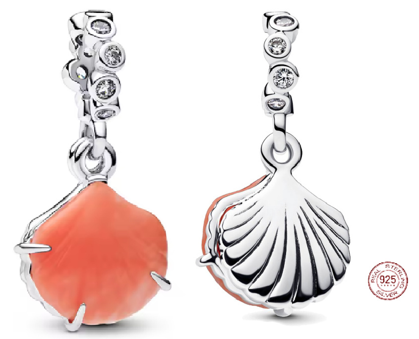 Charm Sterlingové stříbro 925 Mušle 2v1 s korálovou barvou, přívěsek na náramek příroda