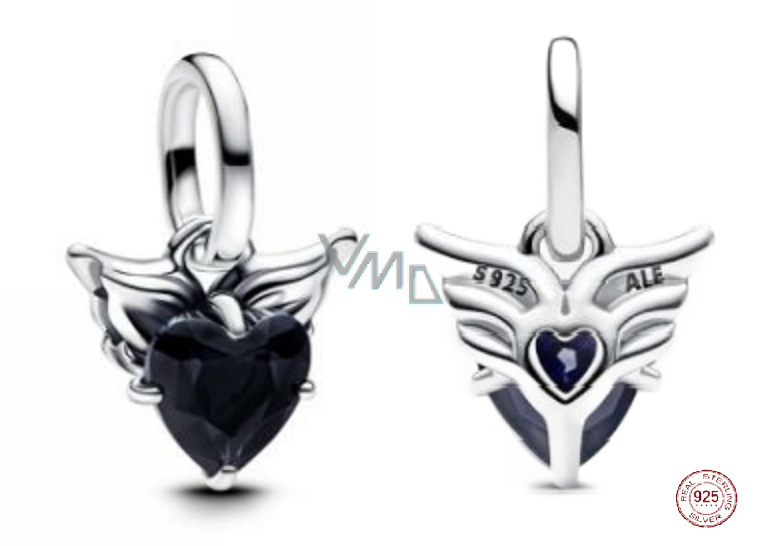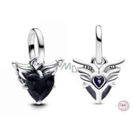Charm Sterlingové stříbro 925 Mini medailon Okřídlené černé srdce, přívěsek na náramek láska