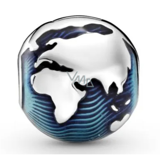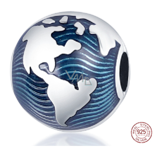 Charm Sterlingové stříbro 925 Planeta Země - modrá planeta všude doma, tak co na Zemi? stopper, klipový korálek na náramek cestování