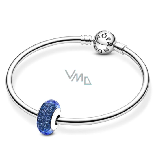Duhový modrý skleněný přívěsek, který dodává náramku neodolatelné kouzlo Muránského skla. Přívěsek s povrchovou úpravou 925 Sterling Silver má exkluzivní design díky mnohotvárnému povrchu skla, který zachycuje a odráží světlo a září tisíci záblesky. Tančí se světlem a je oslnivý.