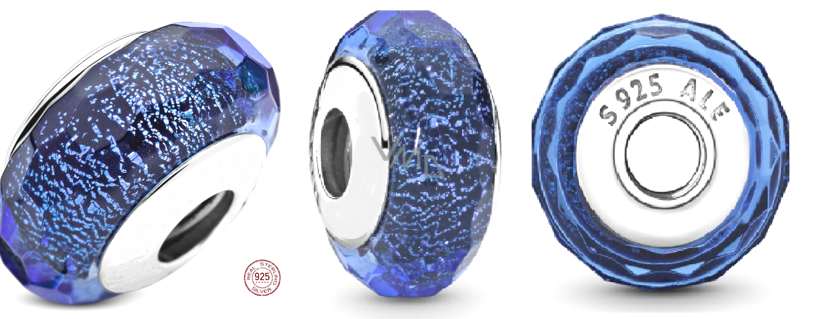 Charm Sterlingové stříbro 925 Modré fazetové z Murano skla, korálek na náramek vesmír