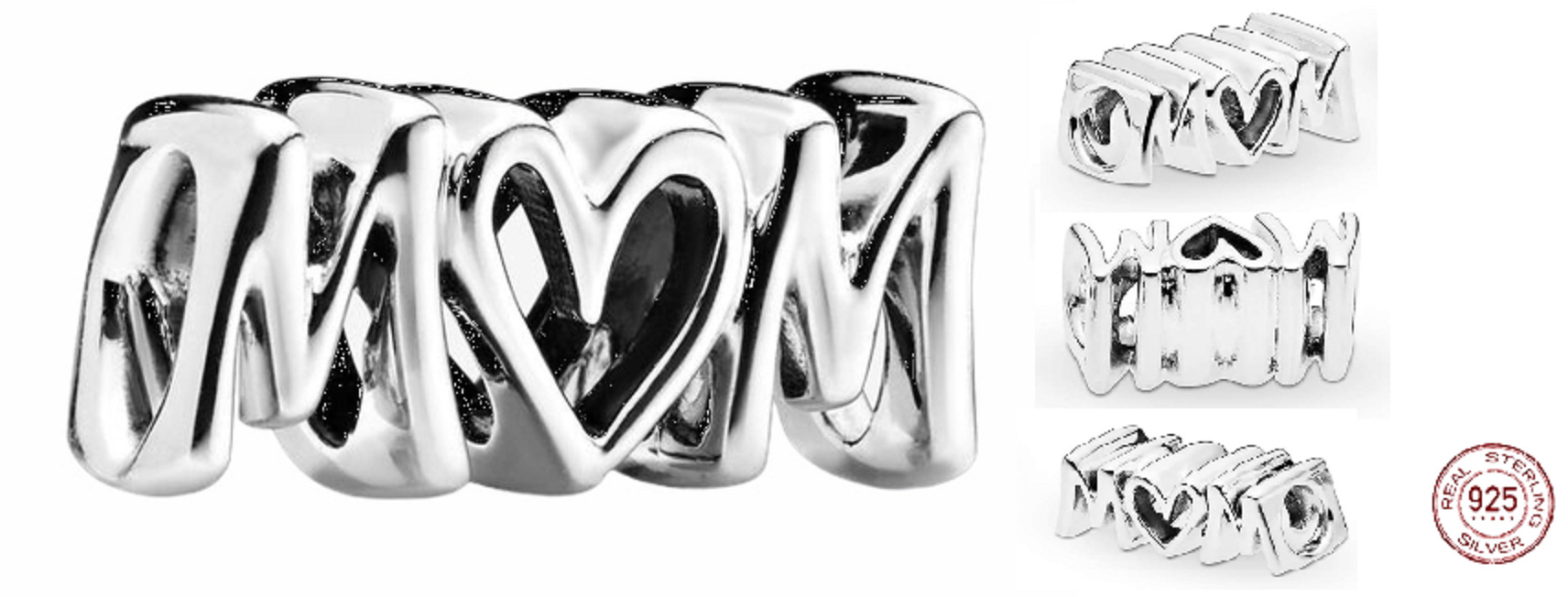 Charm Sterlingové stříbro 925 Mom, korálek na náramek písmena