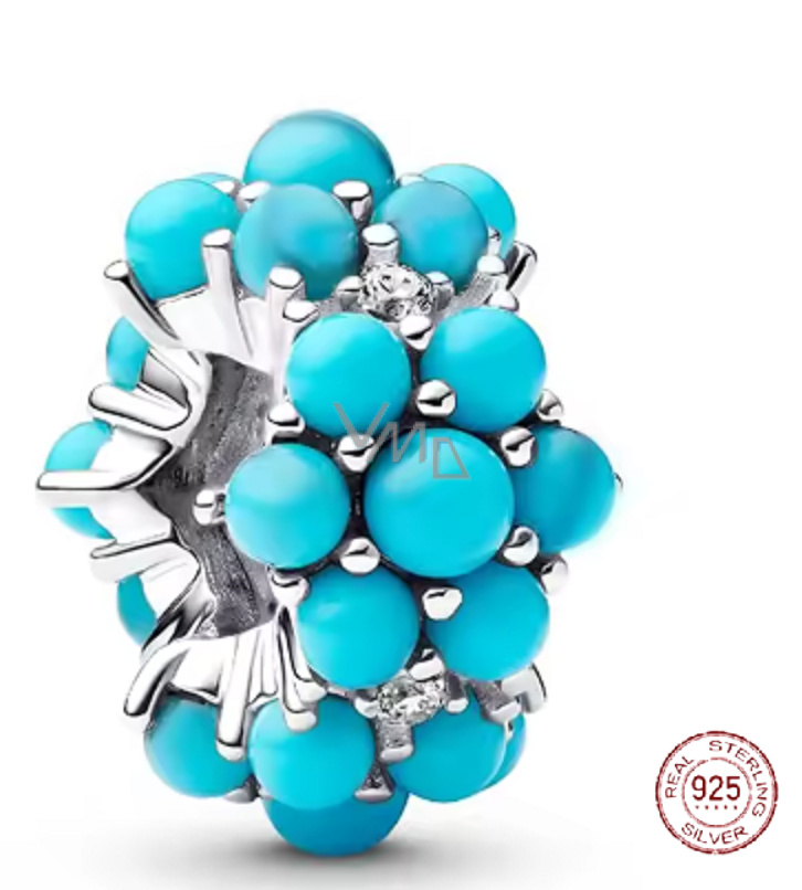 Ponořte se do světa podmořských zázraků s tímto okouzlujícím korálkem Mořská korálová zahrada, inspirovaným bohatstvím oceánu. Zářivě tyrkysové kuličky evokují život v korálovém útesu, zatímco jemné krystalky dodávají šperku jiskru slunečních paprsků odrážejících se od mořské hladiny. Vyroben z pravého sterlingového stříbra 925, tento korálek je mistrovským dílem detailu a elegance.