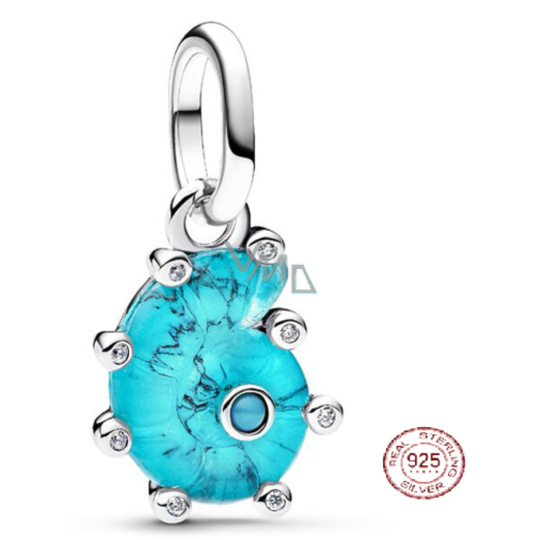 Charm Sterlingové stříbro 925 Mořský šnek z modrého skla Murano, přívěsek na náramek zvíže